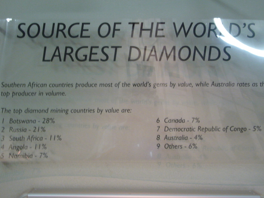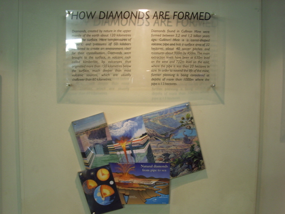 Südafrika ist einer der größten Diamantenfundorte der Erde (nach Wert der drittgrößte). Bedeutend ist die Diamanten Mine in Cullinan 40km östlich von Pretoria.