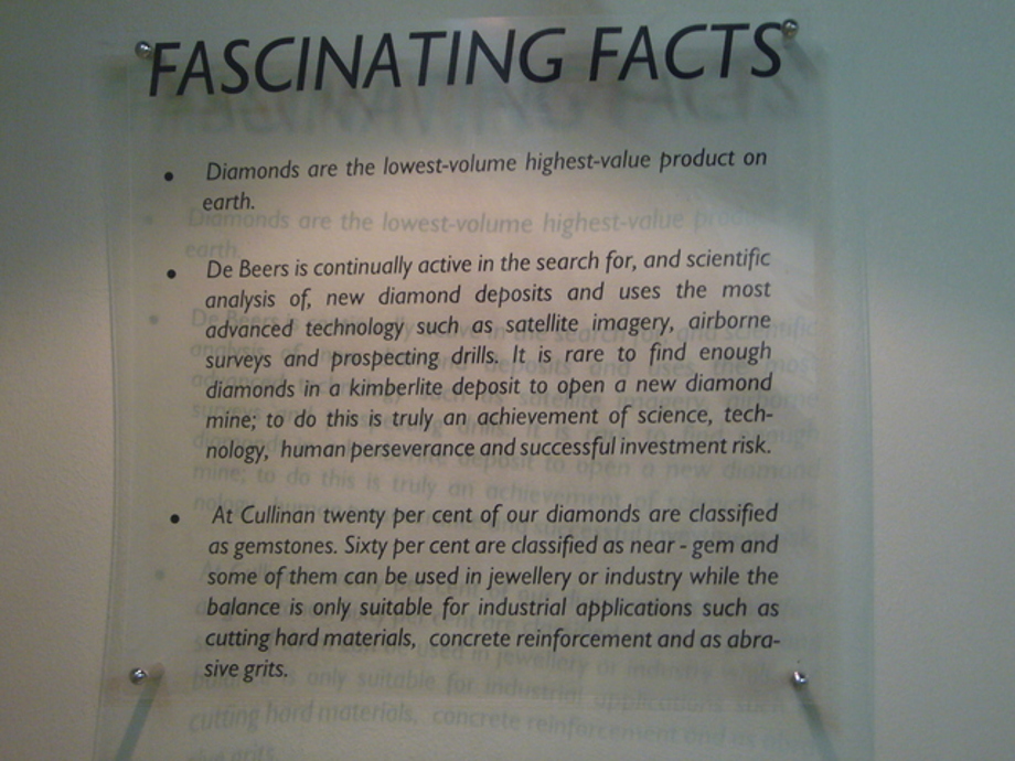 Bei der Minenbesichtigung kann man natürlich auch Schmuckstücke mit Diamanten (siehe letztes Bild) kaufen, allerdings werden die nicht in Cullinan hergestellt und damit auch nicht günstiger als wenn man sie anderswo kauft.